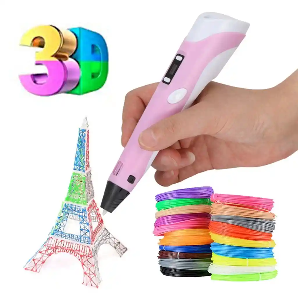 El original lápiz 3D con el que puedes dar rienda suelta a tu imaginación y tus habilidades artísticas, creando increíbles diseños de forma manual. ¿Qué es Pen 3D? Un lápiz de impresión 3D es como una impresora 3D de mano, que utiliza el mismo tipo de calentamiento y extrusor que se tiene una impresora 3D. Pero en lugar de ser controlado con el software de ordenador y los motores, el cabezal de impresión se maneja manualmente, pudiendo regular la velocidad. ¿Cómo se utiliza el Pen 3D? El Lápiz 3D funciona con el calentamiento de filamento plástico, que al calentarse se derrite y se obliga a salir por la punta de extrusión. El plástico fundido es muy suave y se puede fusionar en la superfície o forma que se desee. Una vez está el material en la punta se empieza a enfriar. Después de unos segundos, el plástico se endurece y mantiene la forma que se le haya dado. ¿Qué se puede hacer con un Pen 3D? El lápiz 3D te permite dibujar con plástico. Se puede trabajar el plástico con cualquier forma y aplicarlo a la mayoría de superficies, se puede usar para añadir a distintos objetos cotidianos decorativos, con la práctica, incluso se puede hacer formas en 3D imprimiendo filamento en el aire. Contenido del paquete: 1 Lápiz 3D 24 filamentos en colores al azar, PLA de 1,75 mm Cada filamento independientemente del color viene por 3 metros 1 Adaptador de corriente 1 Base 1 Manual de usuario (Leer antes de usar Lápiz 3D)