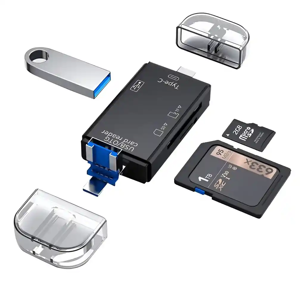 Lector Tarjetas SD/Micro SD, SD USB c,6 in 1 Micro USB OTG Adaptador de Memoria para TF, SDXC, SDHC, MS, MMC, MSXC Acerca de este artículo - 6 IN 1multifunción, La combinación de conector USB estándar y conector micro USB/USB-C hace que este lector de tarjetas sea compatible con tabletas y smartphones Android admiten la función OTG portátiles, El lector de tarjetas puede funcionar en una computadora con sistema Windows, Linux, MacOS, ChromeOS con puerto USB. - Conecta y reproduce Compacto y apto para viajes, Conecta y reproduce No se necesita unidad.El tamaño mini hace que puedas llevarlo a todas partes en tu bolsillo, bolso. - Un Lector para Tarjetas Múltiples, El USB SD lector de tarjetas está diseñado con 2 ranuras para tarjetas: SD, ranuras Micro SD ,conector USB A /micro USB/ USB C, incluyendo SDXC / SDHC / SD / Extreme I III SD / Ultra II SD / MMC / RS-MMC o Micro SD / TF / Micro SDXC / Micro SDHC / UHS-I. - Super Velocidad y Alta Capacidad, USB lector de tarjetas de memoria compatible con tarjeta SD de hasta 512G y permite una transferencia de datos superrápida que le permite transferir películas HD o archivos solo segundos, cuando su host está equipado