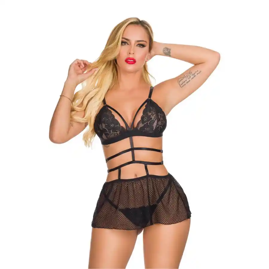Conjunto perfecto para una noche especial. Su diseño sensual y atrevida hará resaltar tus curvas como nunca para que te veas y te sientas increíblemente sexy y deseada. Disfruta de experiencias diferentes y agrega un poco de picardía a tu vida. Características: Referencia: BSC32 Color: Negro Material: Encaje y Mallatex Talla: Única ajustable a talla S y M Incluye: Panty, Babydoll con lazo y tul Cuidado y limpieza: Lavar a mano con jabón líquido Garantía: Por ser una prenda de uso íntimo no se aceptan devoluciones, solo se cubre garantía por defectos de fabricación. Confidencialidad: Tus pedidos se envían en una caja o sobre totalmente sellado opaco, sin ningún tipo de marcas externas. Para nosotros es muy importante tu privacidad.