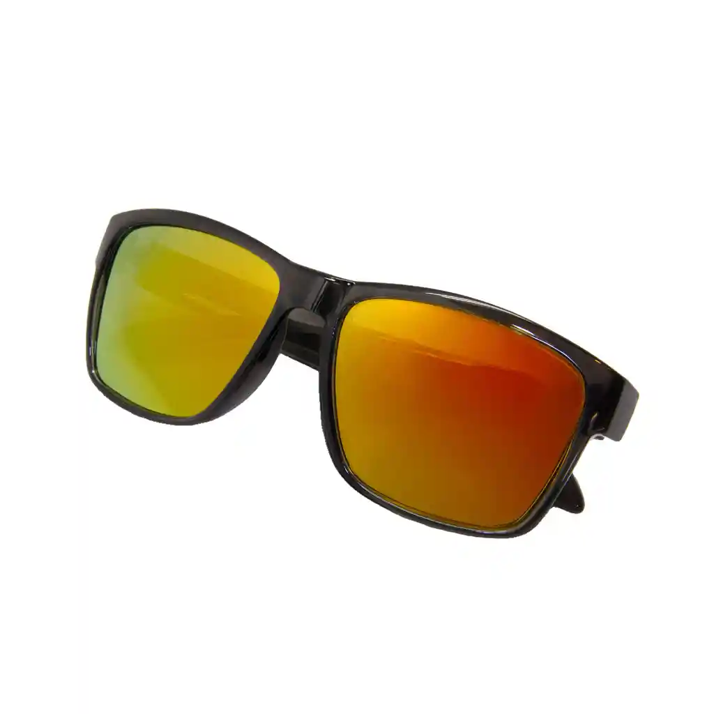 Estos lentes de sol de estilo deportivo destacan por su marco en negro mate y sus micas iridiscentes, que reflejan tonos de rojo, amarillo y verde. Son el accesorio perfecto para un look dinámico y audaz.