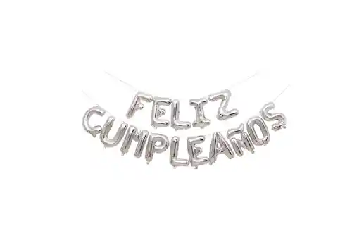 Letrero Globos Feliz Cumpleaos Plata