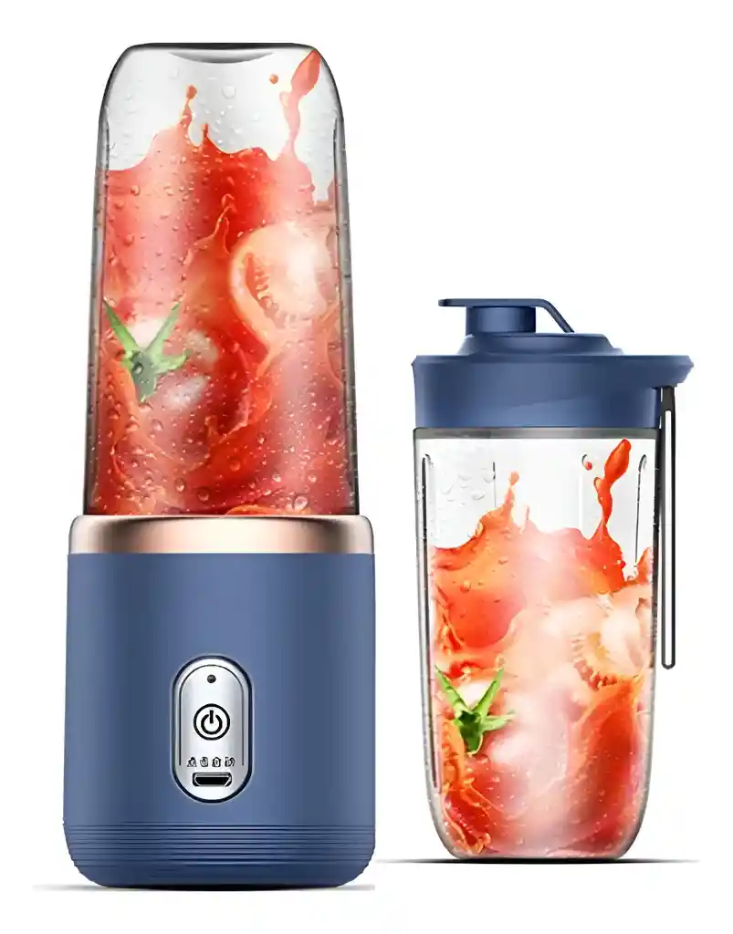 Color del producto: Azul zafiro/Rosa chica (2 colores opcionales) Capacidad: 400ML Capacidad de la batería: 1200mAh Velocidad sin carga: alrededor de 21000 ± 15% RPM Tiempo de carga: alrededor de 3-4 horas Completamente cargado al apretar: 5-10 veces Tamaño de una sola taza: 22,2*9,9*9,9 cm, peso: 360g Tamaño de la taza doble: 22*10*13,5 cm, peso: 410G Aviso: 1. La carga es luz roja, llena es luz azul, la primera vez que usa el exprimidor para cargar durante 2-3 horas. 2. Cuando lo use, asegúrese de apretar la taza. Especificaciones: 1. Fabricado con materiales aptos para alimentos y no tóxicos. Mini, conveniente, esta es una licuadora inalámbrica liviana de una sola pieza que sirve como un recipiente para bebidas. 2. Tiene un diseño de seguridad único. El material ecológico y el diseño único de seguridad le brindan una protección duplicada y le hacen sentir seguro mientras disfruta de un delicioso jugo. 3. Uso: zumo de naranja, zumo de granada, zumo de manzana, zumo de uva, zumo de sandía, etc. 4. Batería recargable incorporada, batería de 1200mAh, mezcla hasta 10 veces con una carga completa. 5. Formas USB de carga: se puede cargar por teléfono móvil, otros dispositivos digitales y banco de energía. Paquete incluye: Exprimidor * 1 Cable de carga * 1 Manual * 1