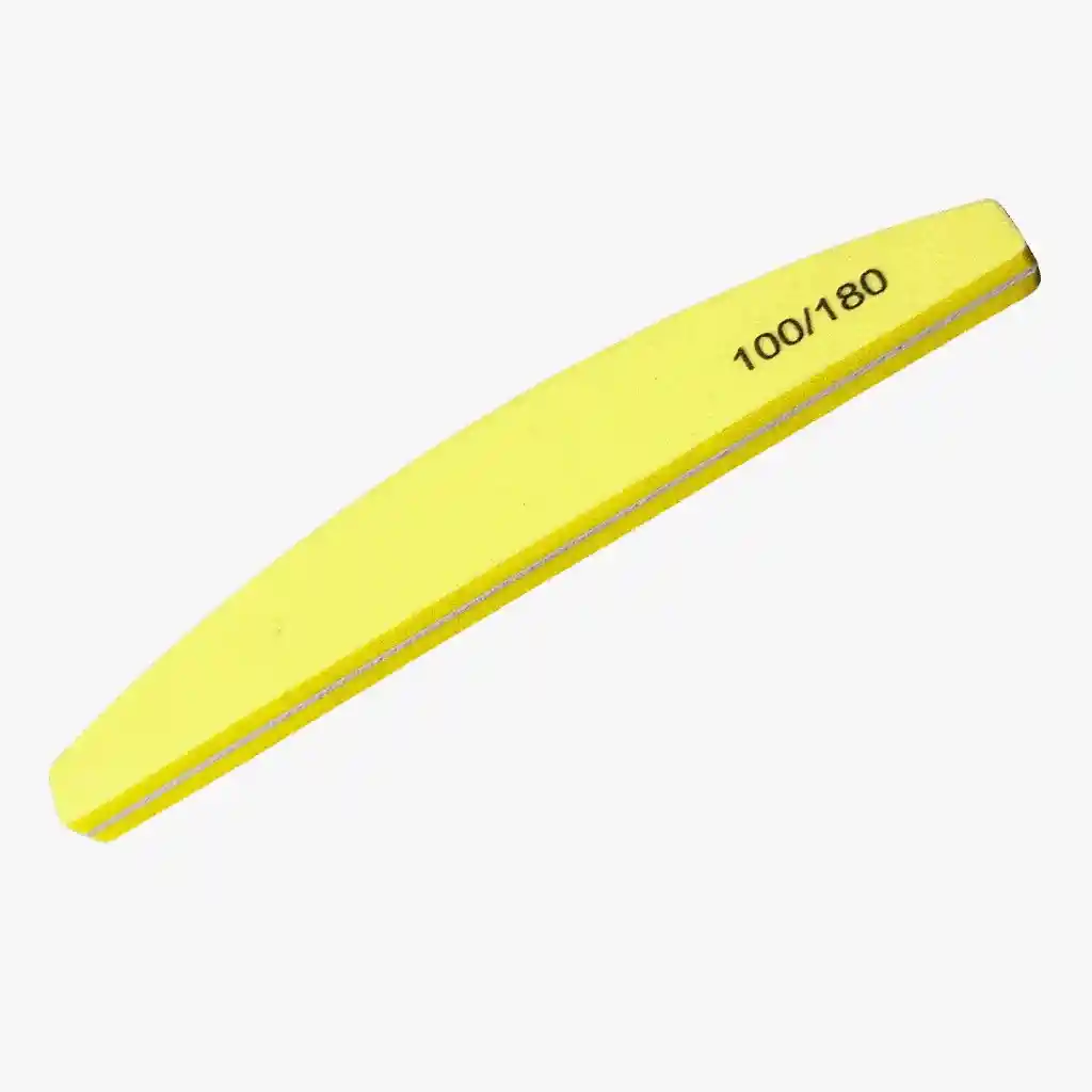 Lima Acolchada Sponge Curva 100 / 180 Grit Lima acolchada tipo Sponge con diseño curvo, ideal para el limado y acabado de uñas naturales o artificiales. Su doble grano permite un trabajo preciso y cómodo: el grano 100 es perfecto para desbastar y dar forma, mientras que el grano 180 ayuda a suavizar y pulir. El cuerpo acolchado brinda mayor control y comodidad durante su uso. Beneficios destacados: Doble grano 100 / 180 para desbaste y pulido. Diseño curvo para mayor precisión. Acolchada para un limado cómodo y seguro. Ideal para uso profesional y personal. Apta para uñas naturales y artificiales.