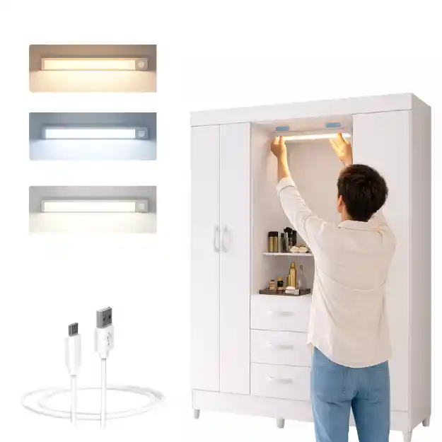 ¿Qué es? Es una lámpara LED recargable con sensor de movimiento, ideal para iluminar espacios como closets, cocinas, baños, escaleras o pasillos de forma automática y eficiente. ¿Qué incluye la compra? • 1 lámpara LED • 1 cable de carga tipo C • 2 láminas magnéticas • 2 láminas de hierro adhesivas Características: • Sensor de movimiento inteligente (se enciende automáticamente) • 3 tipos de luz: cálida, neutra y fría • Recargable por USB tipo C • Instalación fácil sin cables • Diseño delgado y moderno • Bajo consumo de energía • Luz uniforme y sin parpadeos Modo de uso: • Instala la lámpara con las láminas magnéticas o adhesivas en la superficie deseada. • Se activará automáticamente al detectar movimiento en la oscuridad. • También puedes encenderla manualmente si lo deseas. Detalles: • Encendido automático por sensor • Indicador de carga (rojo: cargando / verde: carga completa) • Ideal para espacios con poca iluminación • Portátil y fácil de retirar para recarga Dimensiones: Largo: 50 cm Ancho: 1.9 cm Peso: 56 g Colores: Blanco Talla: Tamaño único Materiales: Plástico ABS de alta calidad Advertencias: • No exponer al agua directamente • No instalar en superficies húmedas • Cargar con adaptadores compatibles Garantía: Garantía por defectos de fábrica Garantía de fábrica: 30 días