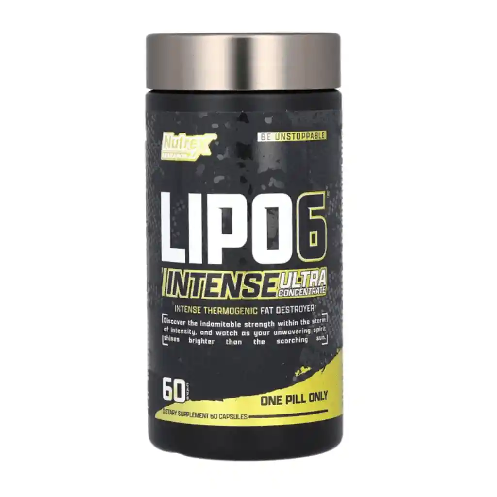 NUTREX Soporte nutricional termogénico para energía, enfoque y control calórico. Lipo-6 Intense Nutrex es un suplemento alimenticio en cápsulas formulado para apoyar la energía, el enfoque mental y el control calórico en rutinas de entrenamiento exigentes. Su perfil está pensado para usuarios que buscan un apoyo intenso pero equilibrado durante etapas de definición, manteniendo el rendimiento físico y la concentración a lo largo del día. Beneficios ✔ Apoya niveles elevados de energía durante el entrenamiento ✔ Contribuye al enfoque y la concentración mental ✔ Ideal para etapas de definición y control corporal Componentes clave ✔ Complejo termogénico con ingredientes estimulantes ✔ Fórmula orientada a energía y rendimiento ✔ Presentación de 60 servicios Uso recomendado ✔ Consumir antes del entrenamiento o en la mañana para apoyar la energía ✔ Ajustar el consumo según tolerancia personal a estimulantes ✔ Integrar junto a una alimentación estructurada y entrenamiento regular