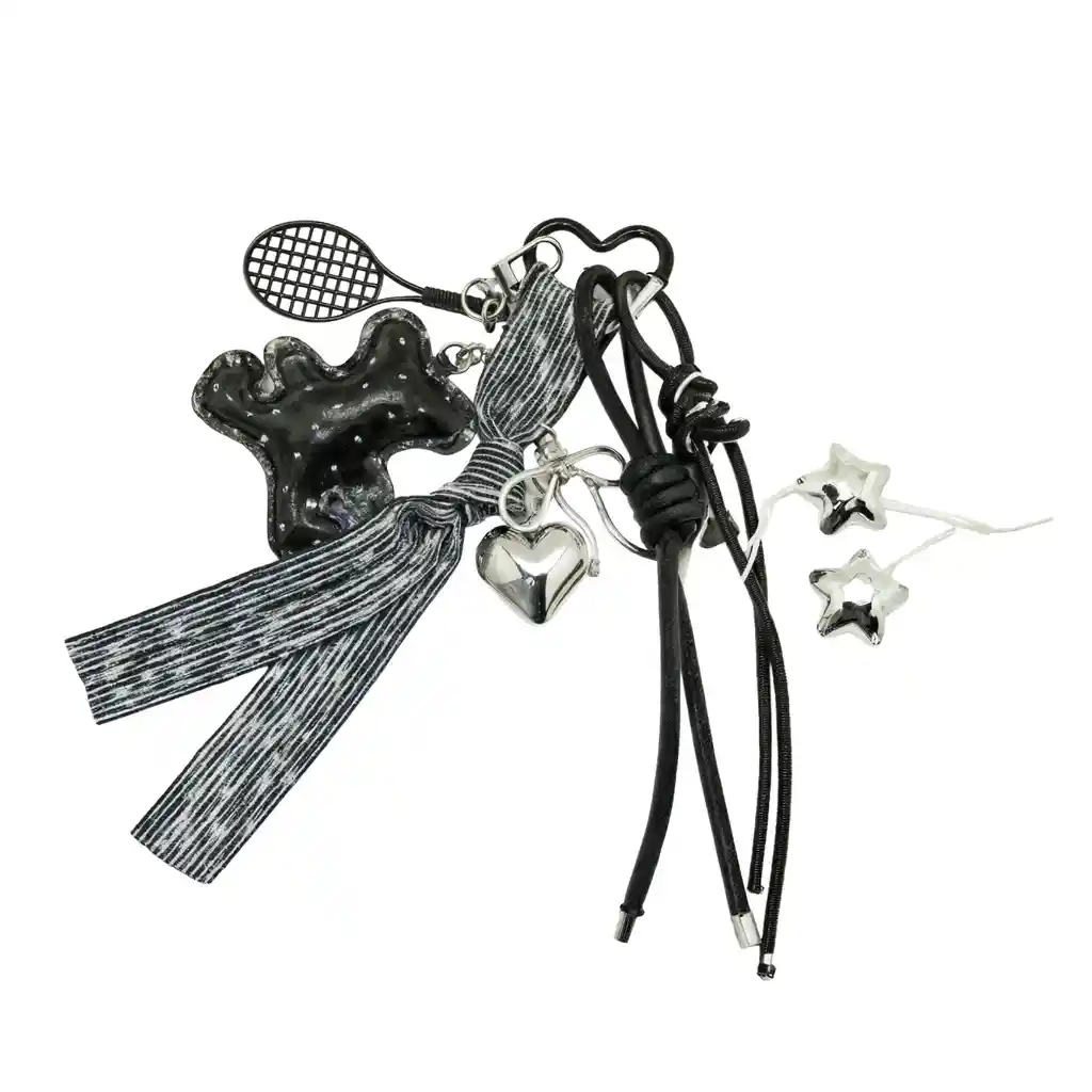 Este sofisticado llavero de diseño multi-charm es el accesorio ideal para quienes buscan combinar elegancia urbana y un toque de romanticismo. Su composición artística lo convierte tanto en un organizador de llaves de lujo como en un elegante adorno para bolsos y mochilas.