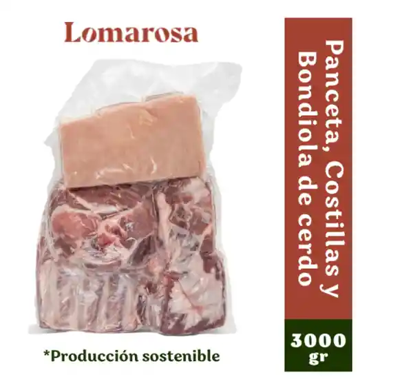 Compuesto Por 900 g de Bondiola de Cerdo en Posta 900 g de Panceta de Cerdo en Posta y 1.200 g Costilla de Cerdo en Rack (2 Unds x 600 g c/u) Todo en Posta y Pesos Aproximados. Ideal Para Bar y Parrilla