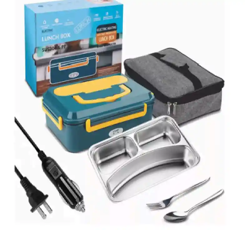 Lonchera eléctrica mejorada: mejor sellado con una junta a prueba de fugas en la tapa para evitar que los alimentos líquidos se desborden. Diseño de dos compartimentos para separar mejor los alimentos; incluye tenedor y cuchara. Material seguro y de alta calidad: hecha de acero inoxidable 304 de grado alimenticio y material de polipropileno. La parte inferior cuenta con una placa de aluminio para un ciclo de calefacción de 360 grados, tanque interior de acero inoxidable, conducción uniforme del calor y velocidad de calentamiento rápida. La carcasa exterior es de plástico apto para uso alimentario. Lonchera térmica de doble función: microondas portátil, calentamiento rápido y mantiene la comida caliente. Adopta calefacción PTC de temperatura constante, manteniendo la temperatura a 176.0 F (80 grados Celsius), asegurando que la comida permanezca caliente y evitando que se queme. Caja de calentador de alimentos portátil 3 en 1: incluye 2 adaptadores de corriente: hogar de 110 V y coches y camiones de 12 V/24 V. Incluye accesorios, ideal para oficina, coche/camión o trabajo al aire libre. Extraíble y fácil de limpiar: lonchera de acero inoxidable de 1.5 L que se puede sacar fácilmente para limpiar, apta para lavavajillas. Nota: evitar que líquido entre en la parte inferior para prevenir cortocircuitos. Material del cuerpo: Plástico. Potencia nominal: 75 W. Frecuencia nominal: 50 Hz. Voltajes nominales: 12 V/24 V/110 V. Tamaño: Contenedor interno de acero Alto: 12 cm Largo: 23 cm Ancho: 16 cm Material: Bandeja y vajilla de acero inoxidable 304, cuerpo de plástico. Lo que obtienes en tu compra: 1 x Lonchera Eléctrica para carro y oficina 1 x Maletín 1 x Cable 12v Puerto Cigarrera 1 x Cable 110v Toma Corriente 1 x Manual De uso 1 x Cubiertos cuchara y tenedor