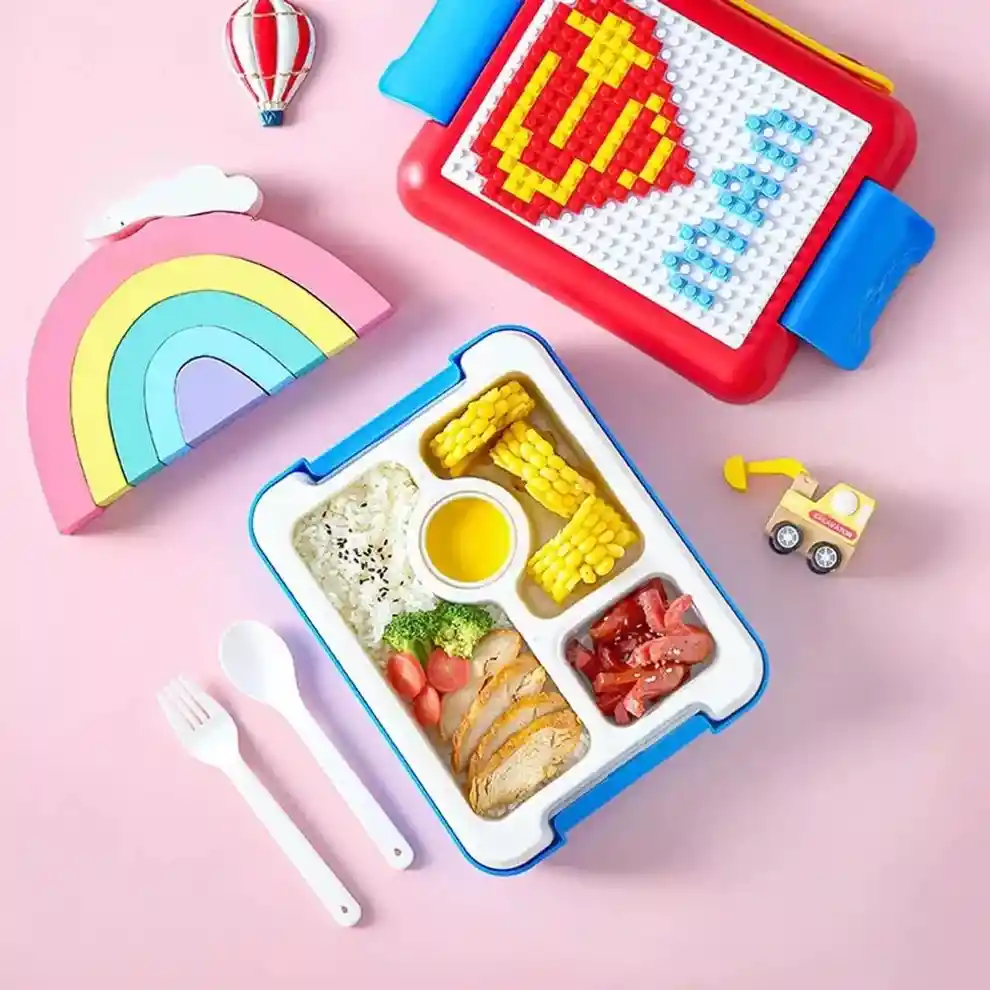 Divertido Diseño LEGO: Cada táper incluye un set de 500 piezas de LEGO, brindando a los niños la oportunidad de crear y jugar mientras disfrutan de su comida. Hermético y Seguro: Las cuatro divisiones herméticas mantienen los alimentos frescos y separados, garantizando una experiencia de comida segura y deliciosa. Material de Alta Calidad: Fabricado con polipropileno, plástico ABS y silicona materiales de calidad alimentaria no tóxicos y duraderos para alimentos, este táper es resistente y fácil de limpiar, asegurando una larga vida útil. Práctico y Funcional: Su diseño compacto y su cierre seguro hacen que sea fácil de transportar, perfecto para la lonchera de los niños en la escuela, excursiones o viajes familiares. Estimula la Creatividad: Fomenta la creatividad y el juego mientras se alimentan, convirtiendo la hora del almuerzo en un momento educativo y entretenido.