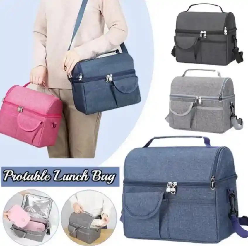 Lonchera Térmica Doble Compartimiento azul gris negro rosado