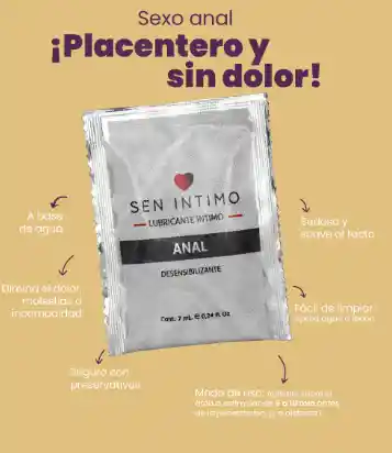 Lubricante íntimo anal ¡Para sexo anal placentero y sin dolor! Ideal para disfrutar la penetración anal plenamente. La lubricación prolongada te ayudará a relajar y disfrutar sin dolor. El lubricante anal perfecto. Modo de uso: Aplica una abundante cantidad en la base del ano y sobre el preservativo, desde el glande hasta la base del pene, penetrando parcialmente por un minuto mientras el ano se dilata de manera natural. Contenido 7ml e0.24 fl. Oz Registro Invima:2021DM-0024736 El envió del producto se realiza con discreción totalmente sellado y sin ningún tipo de marca, es decir, no se ve el interior del empaque.