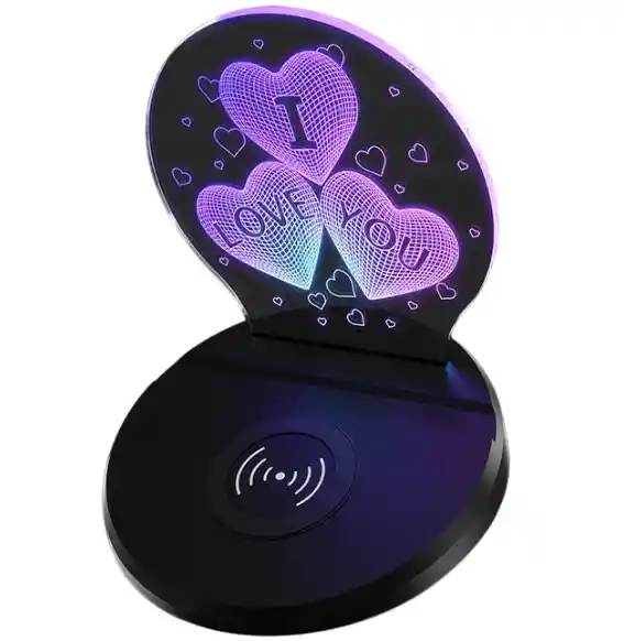 Luz LED 3D Corazón con Cargador – Tecnología romántica para tu día a día Si buscas una pieza decorativa que también sea funcional, esta lámpara LED con diseño 3D en forma de corazón y base de carga inalámbrica es ideal para ti. Diseñada para aportar calidez visual y practicidad, este producto es perfecto para modernizar tu espacio sin renunciar a los pequeños detalles que lo hacen acogedor. Gracias a su luz LED cálida, crea un entorno íntimo y relajante, perfecto para la noche o para momentos especiales. La función de carga inalámbrica te permite mantener tu celular siempre con batería sin preocuparte por cables desordenados. Ideal como regalo especial, pieza de escritorio o lámpara de noche para jóvenes y adultos por igual. Especificaciones: Luz LED cálida, suave para los ojos y de bajo consumo. Diseño 3D en acrílico que da un efecto visual atractivo. Compatible con dispositivos de carga inalámbrica (tecnología Qi). Compacta, liviana y fácil de transportar. Materiales duraderos y seguros, resistentes al uso diario. Incluye garantía de 30 días por defectos de fábrica. No se cubren daños físicos o fallas causadas por líquidos.