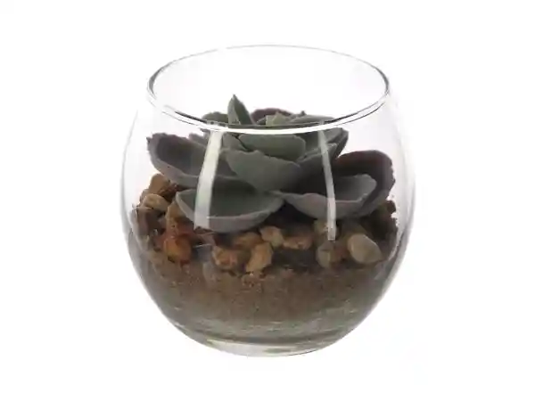 Con Cactus Artificial y Piedras Decorativas. Tiene un Diámetro de 8 x 8 cm.