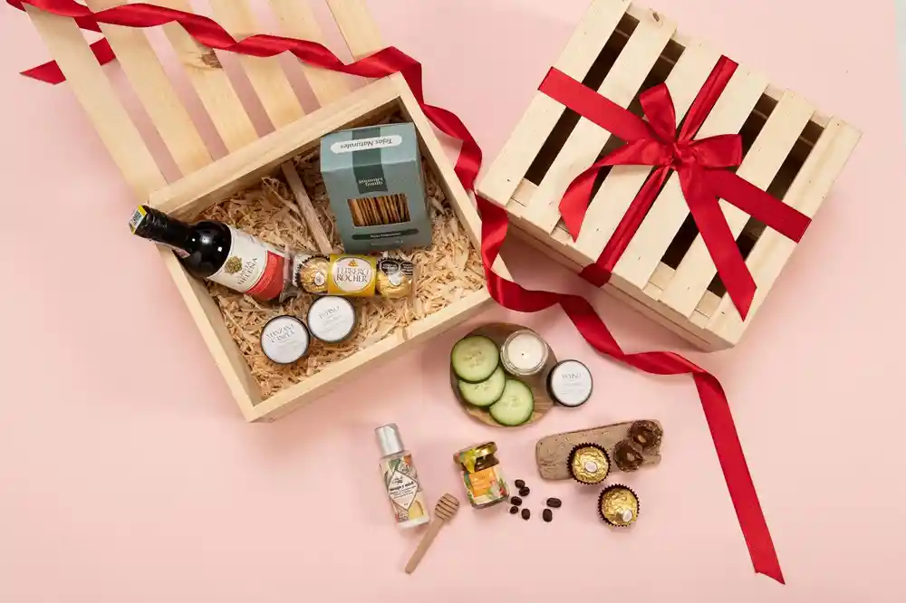 Piba de vino tinto (187 ml), tejas naturales (90g aprox), arequipe con café (30 ml), chocolates Ferrero, 2 min...Ver más