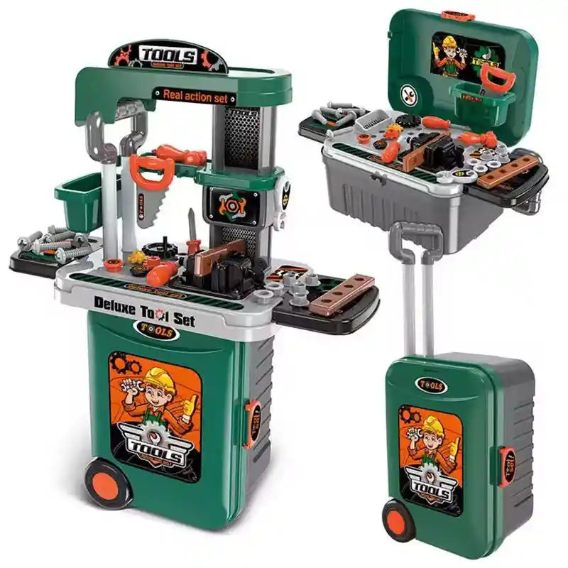 Kit completo pensado para pequeños constructores que aman armar, reparar y crear sin parar. Su diseño 3 en 1 permite transformarla fácilmente en maleta portátil, mesa de trabajo y estación de herramientas, ofreciendo más formas de jugar y aprender. Características principales: • 3 en 1: maleta + banco de trabajo + estación de herramientas. • Incluye accesorios como martillo, llave, taladro de juguete, destornillador, tuercas y tornillos. • Material seguro y resistente, ideal para uso infantil. • Diseño en tonos verdes, llamativo y fácil de identificar. • Sistema de armado sencillo y portátil para llevar a todas partes. • Fomenta la motricidad fina, la creatividad y el juego de roles. Ideal para niños que disfrutan imitar a los adultos, construir y explorar nuevas ideas mientras se divierten. Un set práctico, educativo y lleno de horas de entretenimiento.