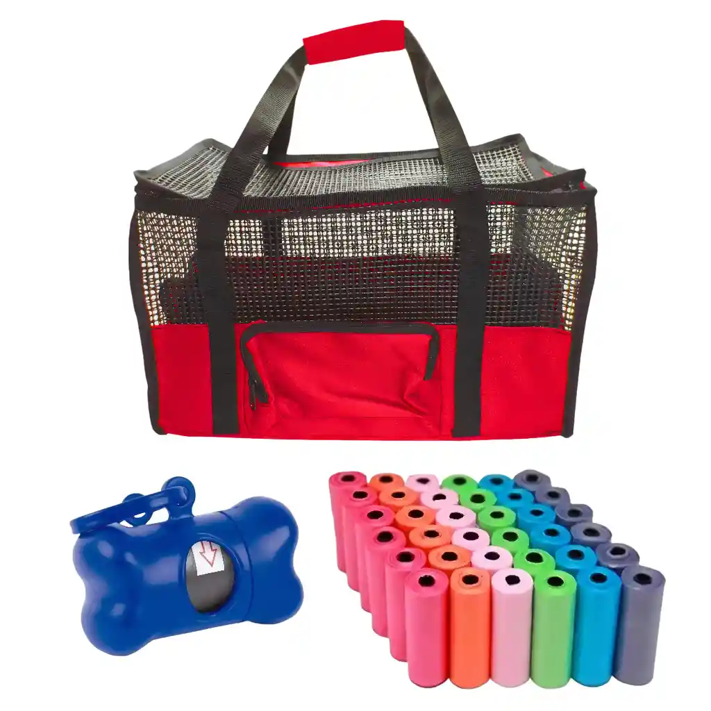 Bienvenido somos Hally Pets, tu mejor aliado para el cuidado de tu hijo Perruno y/o Gatuno. MALETIN CARGADOR GRANDE • Dimensiones: Largo 54 cm, ancho 24 cm, alto 30 cm. Transporta de manera cómoda e ingeniosa a mascota con nuestro maletín tipo morral. Apta para llevar en cabina de Avión Superficie Inferior Rígida Superficie Superior Flexible Se puede desarmar para ocupar menos espacio cuando no se esté usando Características del producto: • Cuenta con un soporte en la base para proporcionar rigidez al momento de transportar a tu mascota. • Cuanta con 1 puertas de ingreso y salida, con Cremalleras • Excelente Material, duradero y fácil de limpiar, malla resistente. • Tiene soporte en la parte interna para darle rigidez y forma a tu maletín • Excelente Ventilación. • Contiene malla de cuatro lados no solo proporciona un viaje seguro y cómodo para tu mascota, sino que también es fácil para ti para comprobar es estado de tu mascota. • Cuenta con un bolsillo para transportar, alimentos, y oros accesorios tiene manijas para cargar. • Dimensiones: Largo 54 cm, ancho 24 cm, alto 30 cm. • Soporta un peso hasta 17 kilos. • Transportador de mascotas aprobado por las aerolíneas: los transportadores para mascotas están aprobados para su uso en la mayoría de las compañías aéreas y ofrecen más comodidad para un largo viaje con tu mascota. Nota: Por favor, mide el tamaño/peso de tu mascota y asegúrate de que tu mascota es adecuada para el cargador antes de comprar. No elijas el cargador solo según el peso, sino la longitud y la altura de tu mascota. Elige tu color favorito Adicionalmente lleva contigo y para tu mascota 1 Hueso dispensador de bolsas para recoger excremento, También Se envía 30 Rollos cada uno con 10 Bolsas para un total de 300 Bolsas para recoger excremento. Colores Surtidos Cada Bolsa mide 22 Cm x 30