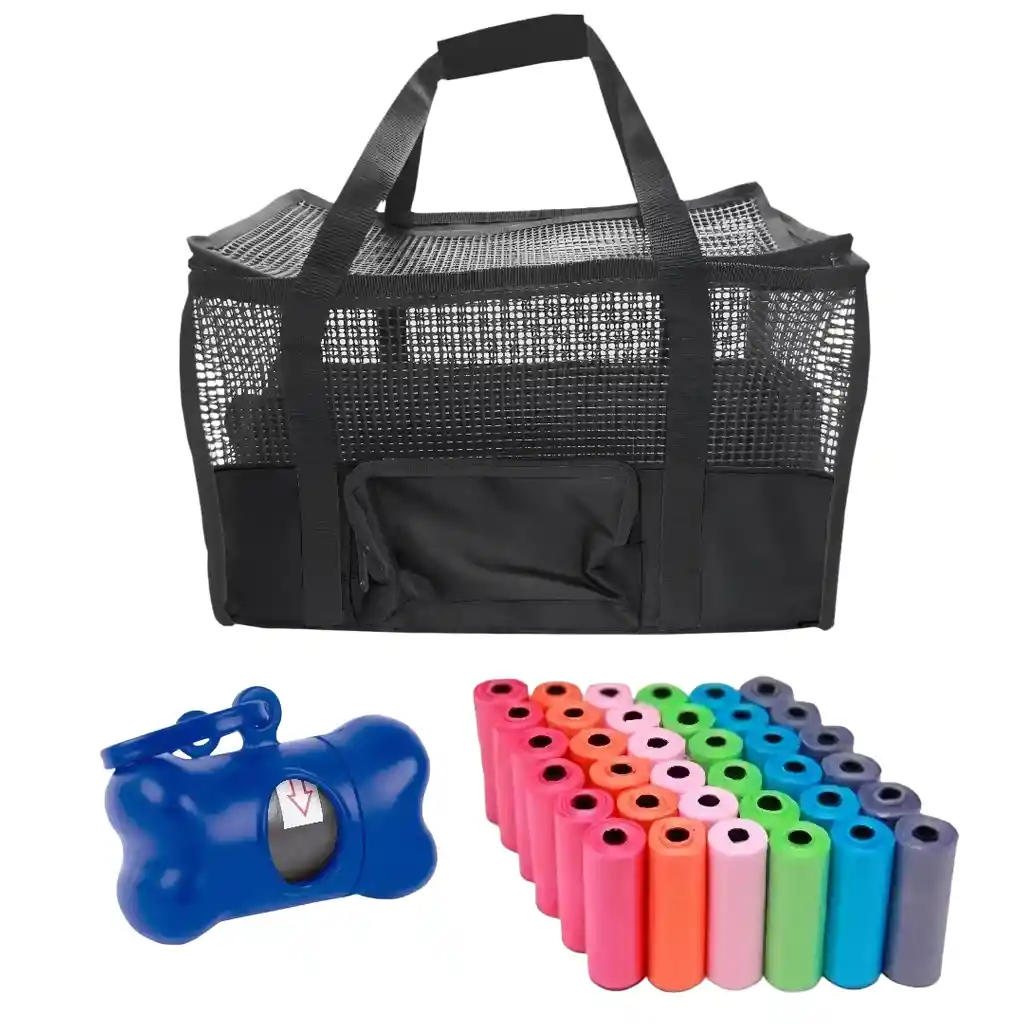 Bienvenido somos Hally Pets, tu mejor aliado para el cuidado de tu hijo Perruno y/o Gatuno. MALETIN CARGADOR MEDIANO Dimensiones: Largo 42 cm, ancho 24 cm, alto 26 cm. Mas 20 Rollos y 1 Dispensador de Bolsas Transporta de manera cómoda e ingeniosa a mascota con nuestro maletín tipo morral. Apta para llevar en cabina de Avión Superficie Inferior Rígida Superficie Superior Flexible Se puede desarmar para ocupar menos espacio cuando no se este usando Características del producto: • Cuenta con un soporte en la base para proporcionar rigidez al momento de transportar a tu mascota. • Cuanta con 1 puertas de ingreso y salida, con Cremalleras • Excelente Material, duradero y fácil de limpiar • Tiene soporte en la parte interna para darle rigidez y forma a tu maletín • Excelente Ventilación. • Contiene malla de Cindo lados no solo proporciona un viaje seguro y cómodo para tu mascota, sino que también es fácil para ti para comprobar es estado de tu mascota. • Cuenta con un bolsillo para transportar, alimentos, y oros accesorios tiene manijas para cargar. • Dimensiones: Largo 42 cm, ancho 24 cm, alto 26 cm. • Soporta un peso hasta 17,5 kilos. • Transportador de mascotas aprobado por las aerolíneas: los transportadores para mascotas están aprobados para su uso en la mayoría de las compañías aéreas y ofrecen más comodidad para un largo viaje con tu mascota. Nota: Por favor, mide el tamaño/peso de tu mascota y asegúrate de que tu mascota es adecuada para el cargador antes de comprar. No elijas el cargador solo según el peso, sino la longitud y la altura de tu mascota. Elige tu color favorito entre más de 10 colores, siempre disponibles. Adicionalmente lleva contigo y para tu mascota 1 Hueso dispensador de bolsas para recoger excremento, También Se envía 30 Rollos cada uno con 10 Bolsas para un total de 300 Bolsas para recoger excremento. Colores Surtidos Cada Bolsa mide 22 Cm x 30