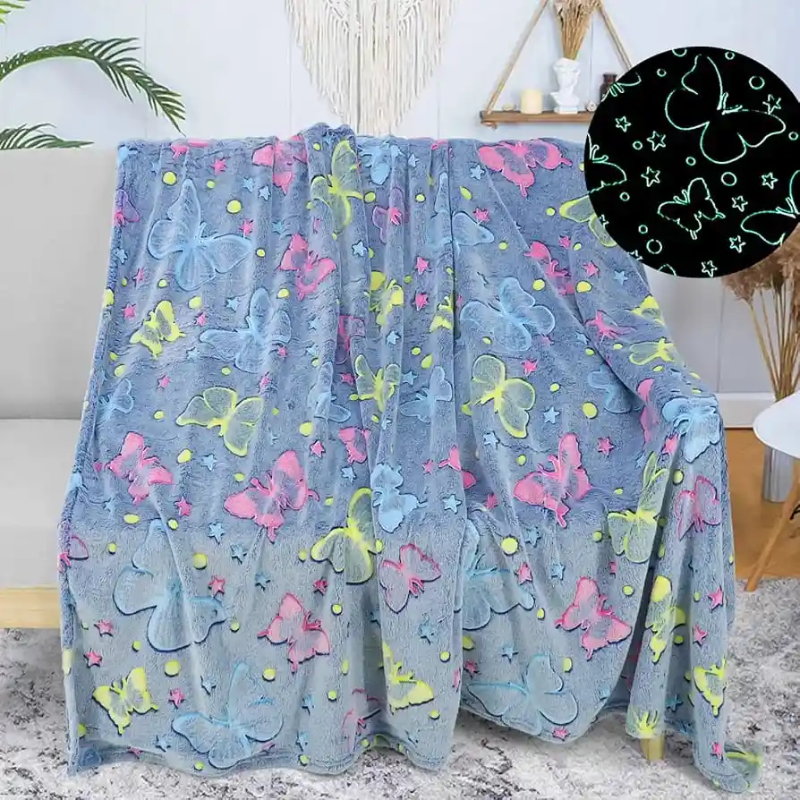 Disfruta de una cobija súper suave, abrigadora y mágica. Este modelo Glow in the Dark ilumina tiernos diseños de dinosaurios cuando apagas la luz, creando un efecto increíble que encanta a niños y adultos. Viene en varios modelos y colores, todos fabricados en tela plush ultra suave que ofrece confort y calidez durante toda la noche. Características: Brilla en la oscuridad (solo necesita cargarse con luz). Diseños divertidos y variados: dinosaurios y figuras temáticas. Tamaño amplio: aproximadamente 147 X 197 cm. Súper acogedora, ideal para cama, sofá o siestas. Perfecta para regalo.