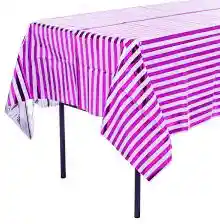 Mantel Fiesta Metalizado 183*137 a rayas Blanco Fucsia