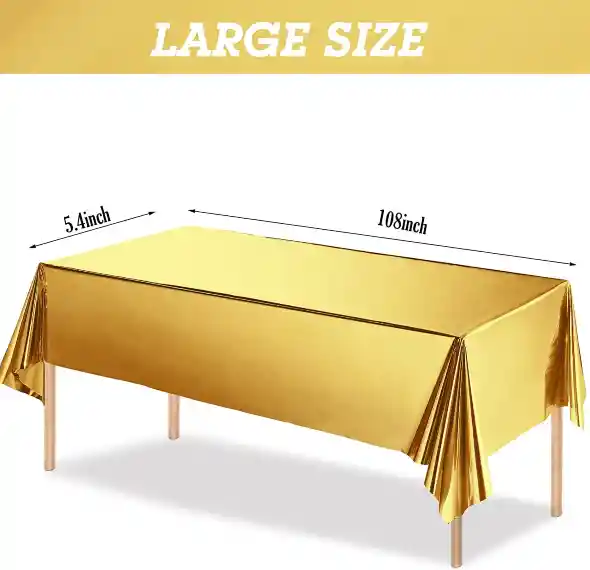 Mantel Metalizado para tus Celebraciones Dorado Mantel de papel metalizado colores Brillantes y muy especiales Medidas : 137 cm x 183 cm Disponibilidad inmediata