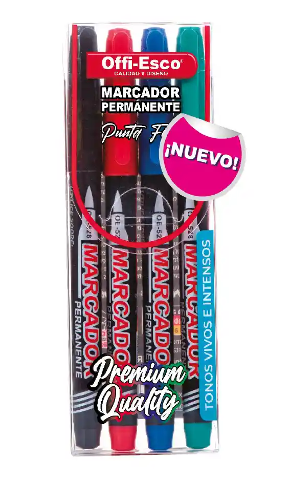 Marcadores Permanente Punta Fina Offi Esco X 4 Unidades Ref Oe-528-4 Marcador permanente punta fina Estuche por 4 unidades Marca plástico, vidrio, Cerámica, caucho, cuero, vasos de Cartón y tela