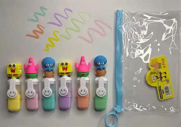Marcadores Tipo Resaltadores Tonos Pastel Con Diseños De Bob Esponja Por 6 Unidades
