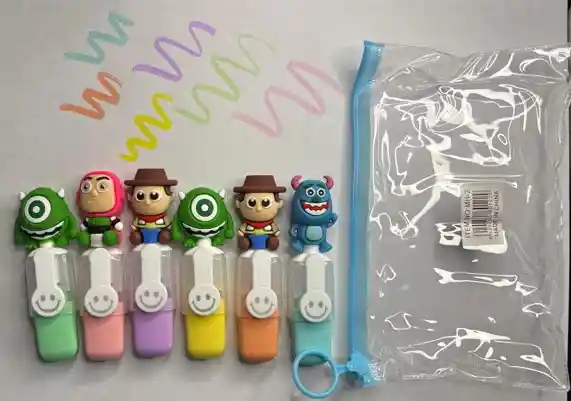 Marcadores Tipo Resaltadores Tonos Pastel Con Diseños De DISNEY Por 6 Unidades