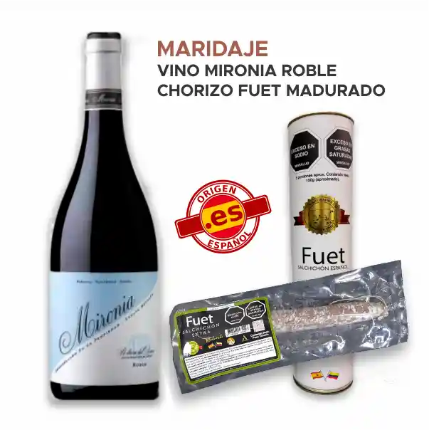 Maridaje Vino tinto Mironia Roble con pack de Chorizo Fuet Español
