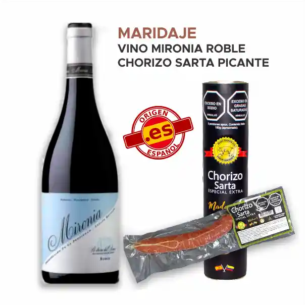 Maridaje de Vino Tinto Mironia Roble con pack de Chorizo Sarta Español