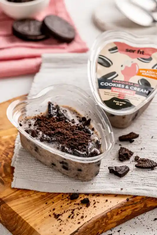 Delicioso postre refrigerado listo para consumir a base de leche condensada sin azucar y galletas tipo oreo sin azucar.