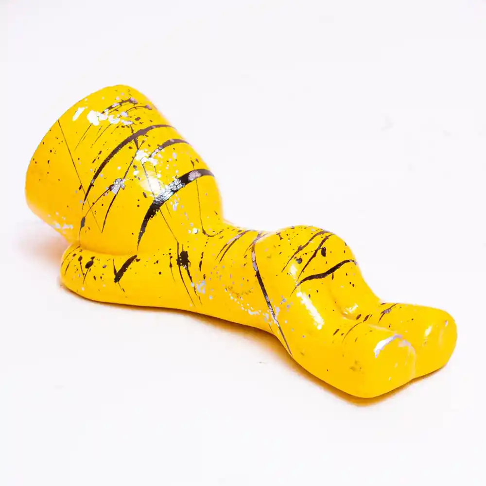 Esta matera de cerámica artesanal es una pieza única que combina arte y funcionalidad. Su diseño en forma de cuerpo abrazado, pintado a mano en un vibrante color amarillo con detalles abstractos en negro y blanco, le da un estilo moderno y llamativo. La parte trasera es completamente plana, lo que permite colgarla fácilmente en la pared, ideal para decorar interiores, balcones o muros de jardín. Es perfecta para plantas pequeñas como suculentas o helechos, y se convierte en un punto focal decorativo que añade personalidad y vida a cualquier espacio.