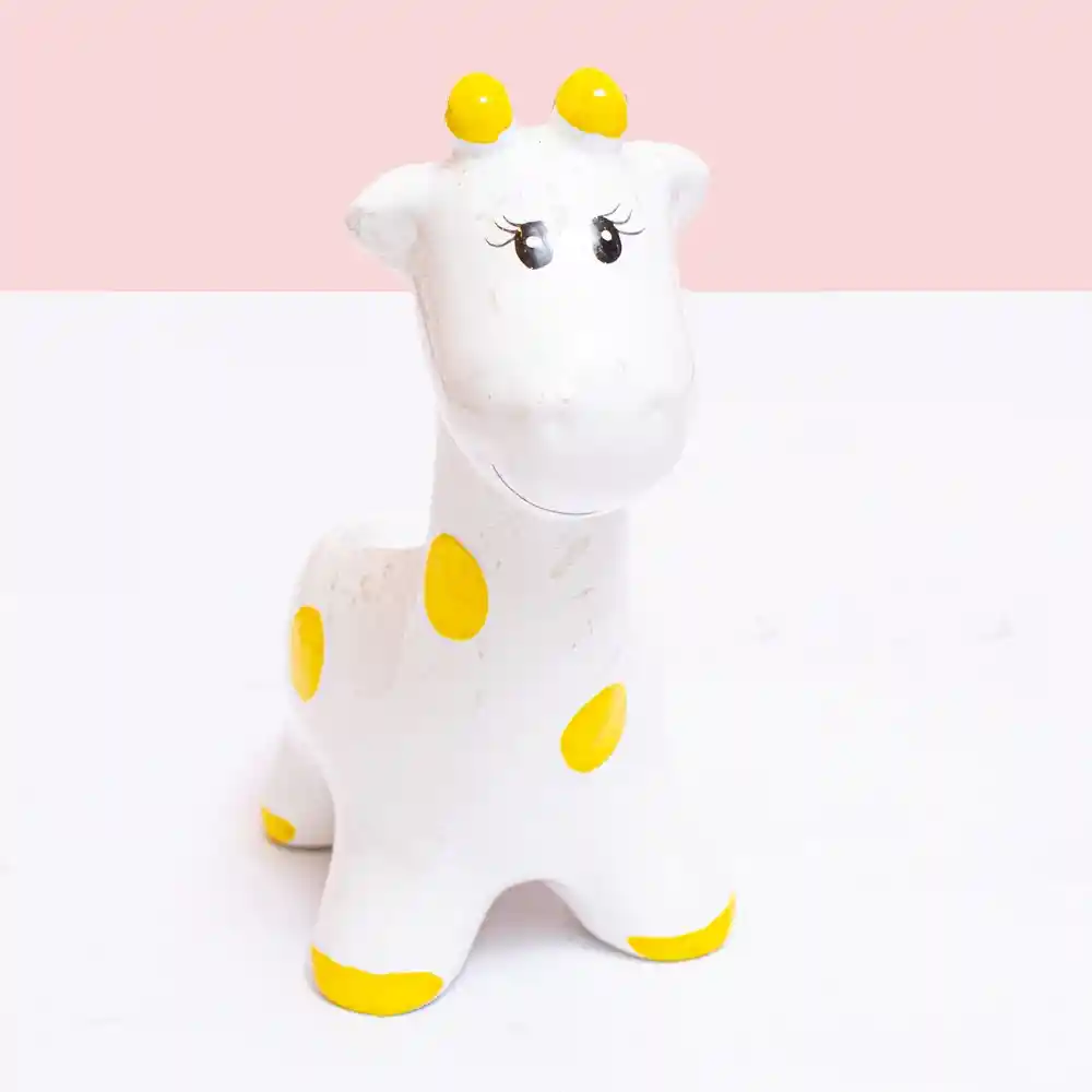 Esta encantadora matera en forma de jirafa está pintada en blanco con detalles amarillos en los cuernos, patas y manchas. Su carita tierna y ojos brillantes transmiten ternura y simpatía, convirtiéndola en el complemento ideal para habitaciones infantiles, estanterías coloridas o espacios que buscan un toque juguetón. Perfecta para plantas pequeñas o suculentas.