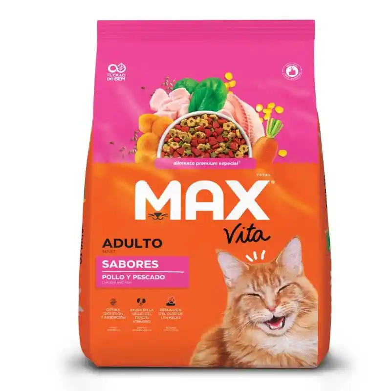 La línea Max Vita cuenta con el sello VITA COMPLEX que garantiza una alimentación 100% balanceada y llena de ingredientes que hacen que el día a día de tu mascota sea completo y feliz: desde el plato, con consumo total de la racion, hasta una excelente digestibilidad que mostrara heces firmes y sin olor. Con Max Vita tu mejor amigo estará siempre activo para disfrutar con él cada momento.