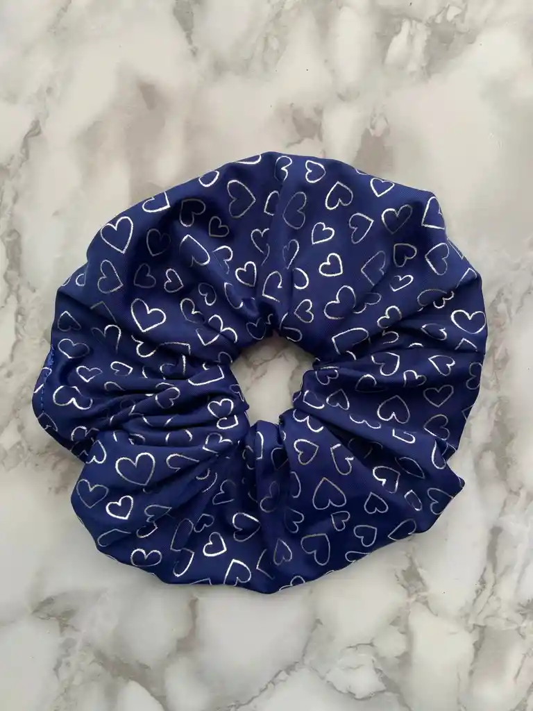 Maxi scrunchie estampado, color azul marino. Confeccionado 100% a mano.