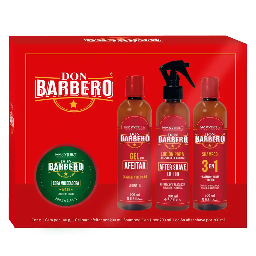 Maxybelt linea profesional diseño un producto ideal para el cuidado corporal y capilar del hombre de hoy. Compuesta por shampoo 3 en 1, gel para afeitar, aceite para barba, cera moldeadora y fijadora de cabello, barba y bigote.