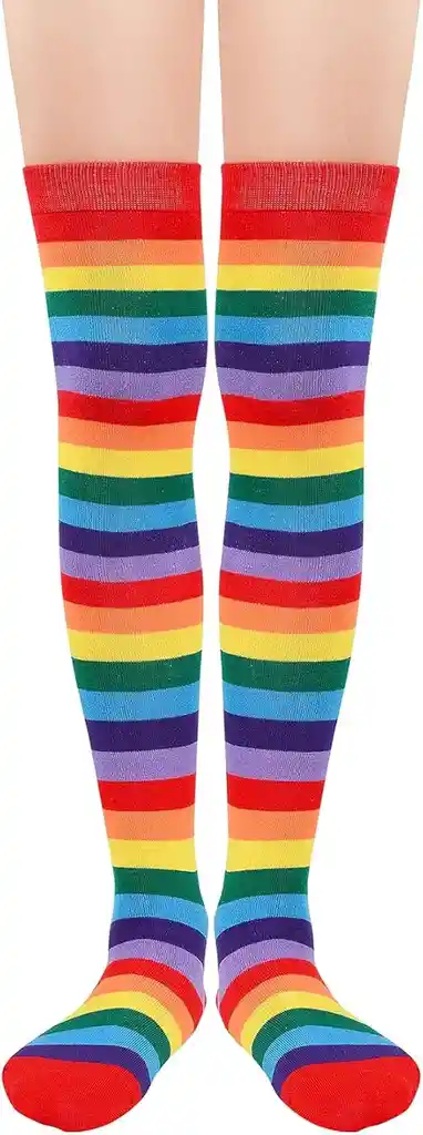 Medias de lineas multicolor color perfectas para la disfraz 1 par de medias Talla unica largo de 55 cm desde el talon material de tela diseño de rallas multicolor disponible para envio inmediato