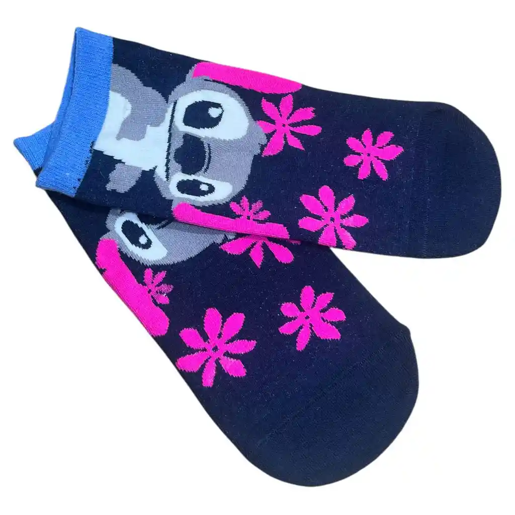 🧦🌺 Medias de Stitch 💙 llenas de ternura y color. Decoradas con flores fucsias vibrantes 🌸✨, combinan comodidad, suavidad y un diseño encantador que hará resaltar cualquier outfit 👧💖. ¡Ideales para regalar y alegrar cada paso con estilo y diversión! 🌈👟