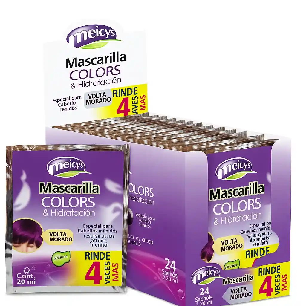 💜 Meicy’s Mascarilla Colors & Hidratación – Violeta Profundo Descripción general: La Mascarilla Colors & Hidratación Violeta Profundo de Meicy’s está diseñada para cabellos teñidos o decolorados, especialmente aquellos con tonos fríos, lilas o violetas. Su fórmula avanzada hidrata profundamente, revitaliza el color y ayuda a mantener la intensidad del tono entre aplicaciones de tinte. 🌟 Beneficios: Reaviva el color violeta profundo, aportando brillo y luminosidad. Hidrata y nutre el cabello dañado por procesos químicos. Evita la pérdida de pigmento, manteniendo el color intenso por más tiempo. Aporta suavidad y sedosidad sin apelmazar. Fórmula enriquecida con componentes naturales. Rinde 4 veces más que una mascarilla convencional. 💆♀️ Modo de uso: Lava el cabello con shampoo y elimina el exceso de agua. Aplica la mascarilla de medios a puntas. Deja actuar de 5 a 10 minutos, dependiendo de la intensidad deseada. Enjuaga con abundante agua. 💫 Ideal para: Cabellos teñidos en tonos violeta, lavanda, platinado o fantasía. Quienes buscan mantener el color vibrante y el cabello nutrido entre tintes. Uso profesional en salones o doméstico para el cuidado capilar diario.