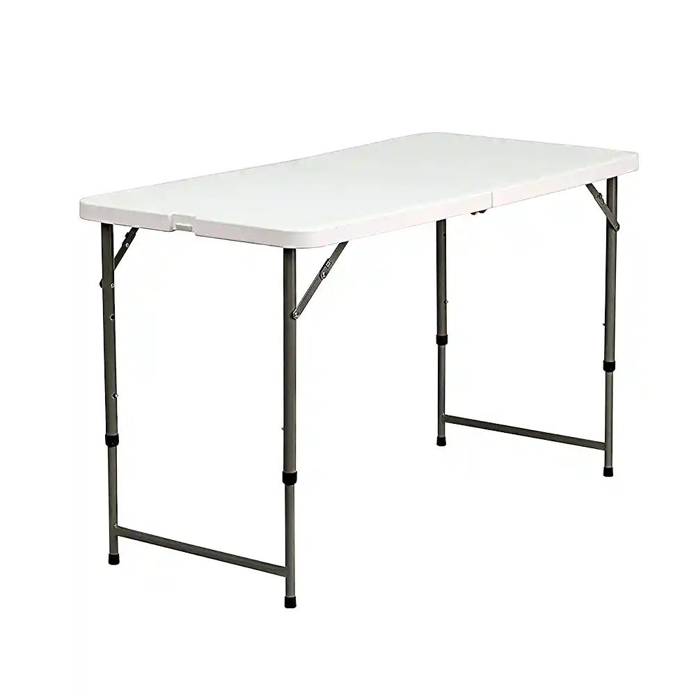 Si lo que buscas en una mesa resistente entonces nuestra mesa de 1.22 metros de largo es para ti. Hecha con patas de acero con tapones antideslizantes. Cuenta con cerraduras de bastidor para mayor seguridad. Se pliega fácilmente y con sujetador en tela resistente para mayor comodidad a la hora de transportar. Su diseño de estructura de refuerzo está basado en la forma de panal lo que le da esa increíble resistencia. Además cuenta con altura ajustable de 56 a 90 cm para adecuarla a como la necesites. Sin duda se verá hermosa no solo en exteriores mientras haces tu día de campo, sino en interiores para tu día a día. Tu nueva mesa plegable se convertirá en una gran adición a tu hogar. DIMENSIONES DEL PRODUCTO DESPLEGADO: ANCHO 61 cm ALTO AJUSTABLE 56-60-74-90 cm LARGO 122 cm PESO 7.7 kg PLEGADO: ANCHO: 61 cm ALTO 7.6 cm LARGO 63 cm DIMENSIONES DEL EMPAQUE ANCHO 63 cm ALTO 66 cm LARGO 8 cm PESO 8 kg CONTENIDO 1 Mesa plegable de 1.22 m BENEFICIOS Plegable y fácil de transportar Reforzada y resistente Ajustala a la altura que necesites Ideal para exteriores como para interiores. CARACTERÍSTICAS TÉCNICAS Estructura en forma de panal Cerraduras de bastidor Diseño plegable 4 Tipos de altura ajustable MATERIALES Plástico (Polietileno) Acero 3 MESES DE GARANTÍA POP DEFECTO DE FABRICA