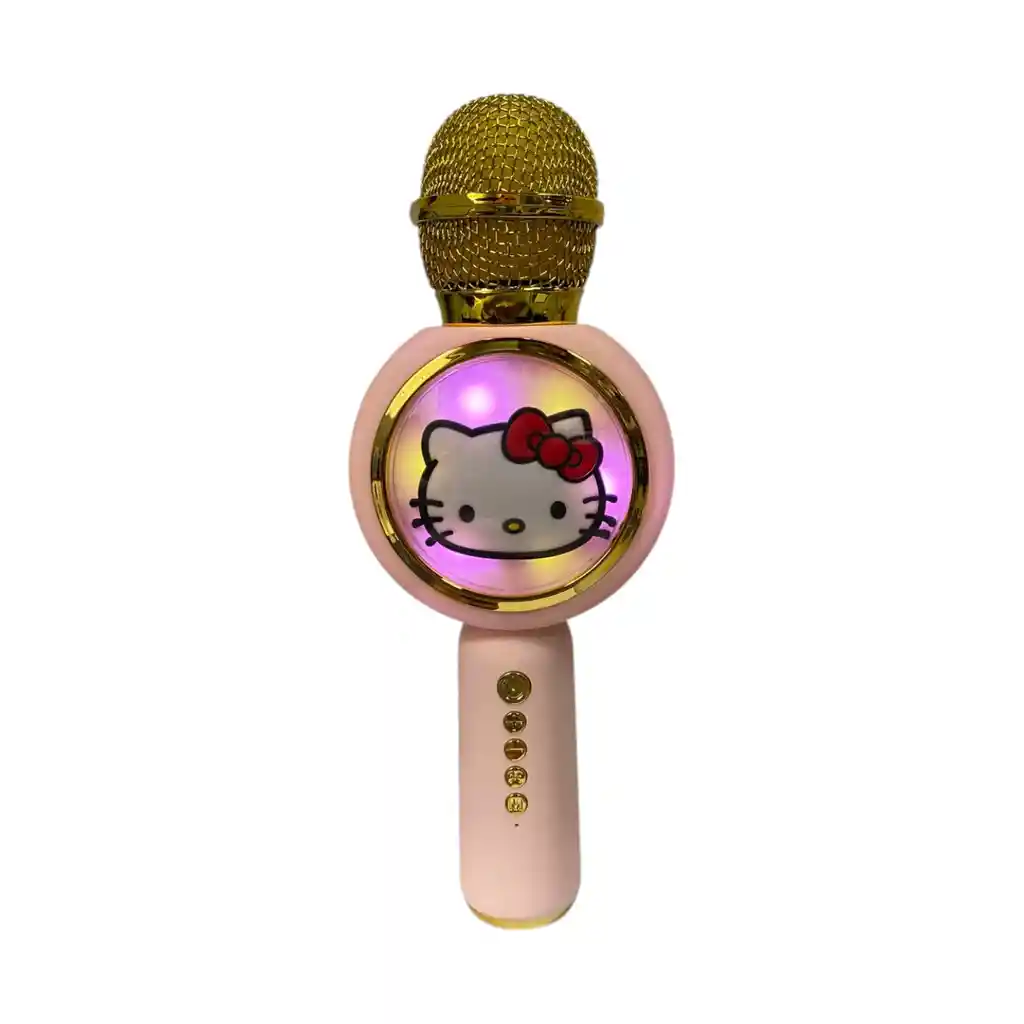 ***¡¡BIENVENIDO A ATARISTATION !!*** 1. CARACTERISTICAS DE LA COMPRA: 1.1 Esta compra incluye: - 1 Microfono Karaoke Speaker Portatil Bluetooth Para Niños 1.2 Características del producto: Micrófono karaoke inalámbrico con parlante integrado y un diseño encantador con personajes. Su acabado con detalles dorados y luces LED lo hacen divertido y llamativo, perfecto para fiestas, reuniones o entretenimiento en casa. Cuenta con función de cambio de voz para mayor diversión, ofrece un sonido claro y potente gracias a su altavoz incorporado y conexión inalámbrica, permitiéndote cantar y reproducir música de forma práctica y entretenida.