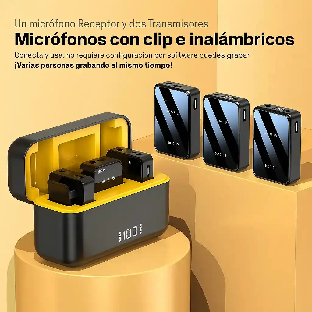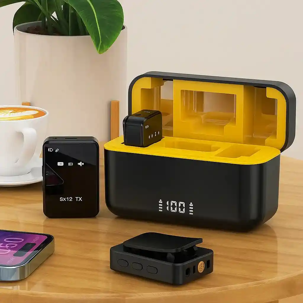 El modelo SX12 2.4G es un micrófono inalámbrico portátil de doble canal que permite grabar desde dos fuentes de audio simultáneamente. Es ideal para creadores de contenido, docentes, periodistas y profesionales del video. Su tecnología "plug and play" permite conectarlo sin necesidad de instalar drivers. Compacto, liviano y con excelente rendimiento en exteriores e interiores, garantiza libertad de movimiento y excelente captación de voz. Características principales del producto: * Tecnología inalámbrica 2.4G para conexión estable y sin interferencias * Batería de micrófono de 200mAh y batería de receptor de 200mAh, con duración de hasta 9 horas * Estuche de carga con capacidad de 1000mAh para recargar en cualquier lugar * Retraso de transmisión de solo 30ms para sincronización perfecta entre audio y video * Alta sensibilidad de captación: -42 dB * Relación señal/ruido de 64dBm para grabaciones más limpias y profesionales * Compatible con dispositivos móviles con entrada 3.5mm (puede requerir adaptador para algunos modelos) * Funciona sin necesidad de aplicaciones ni configuraciones complicadas Accesorios que incluye el producto * 2 Micrófonos de solapa inalámbricos SX12 * 1 Receptor con conector 3.5mm * 1 Estuche de carga con batería integrada * 2 Protectores antiviento (espumas) * 1 Cable de carga * Manual de usuario