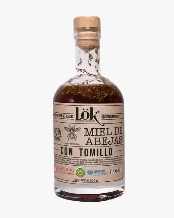 Miel Natural con Tomillo 500 ml — deliciosa miel pura infusionada con tomillo, que aporta un aroma y sabor herbal suave. Perfecta para endulzar bebidas, aderezar yogures, acompañar quesos o untar en tostadas con un toque aromático natural. 100 % natural y versátil para tu cocina y bienestar.