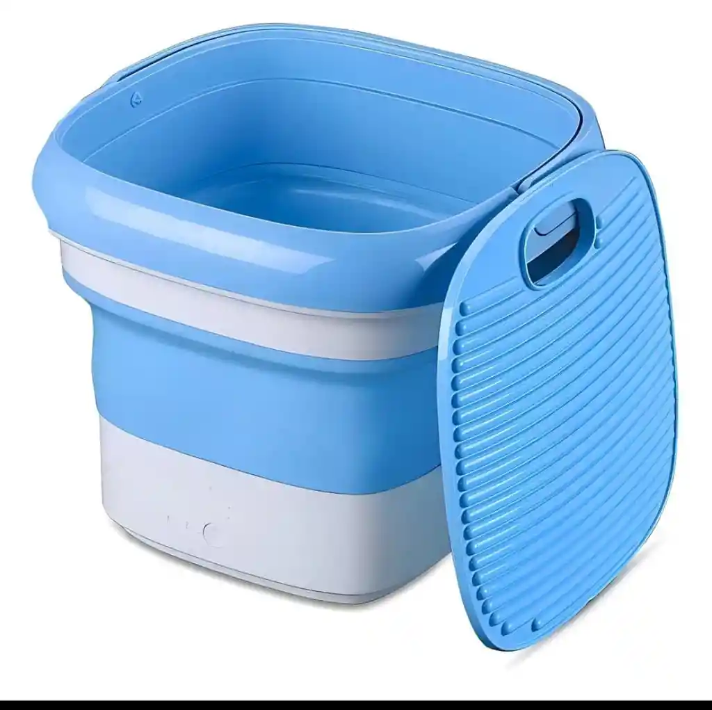 Lava tu ropa de forma rápida y práctica con esta mini lavadora portátil. Ideal para espacios pequeños, viajes o uso diario con prendas ligeras, combina funcionalidad y diseño compacto
