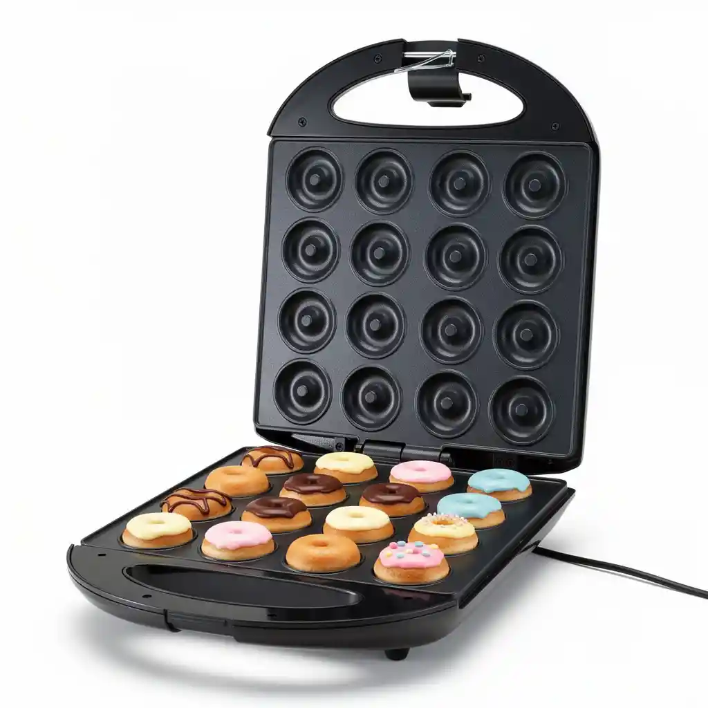 Esta mini maquina de donas cuenta con una calefaccion de doble cara que garantiza una coccion uniforme y perfecta para sus donas, esta maquina es facil de limpiar y facil de ubicar en cualquier lugar de tu cocina, cuenta con un indicadr de luz el cual permite saber cuando utilizar la maquina de donas, su revestimiento antiadherente no permite que tu preparacion se pegue o se deforme las dimensiones del producto 29,3X35,3X13cm