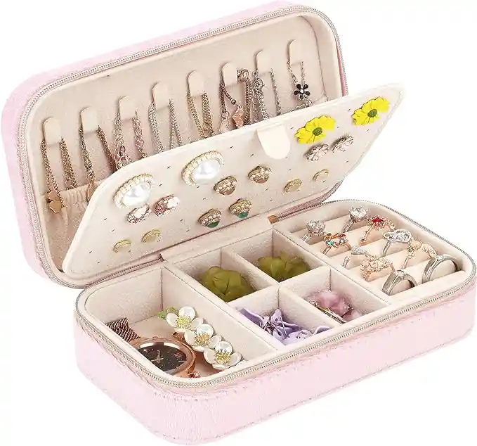 Hermoso joyero con un diseño simple y compacto de aspecto elegante para organizar y almacenar aretes, collares, anillos, etc. Su tamaño es ideal para transportar todos tus accesorios de manera segura evitando enredos y daños. La tapa y la base son sólidas, bien construidas y resistentes, mantienen todas sus joyas queridas bien organizadas con este estuche. Un gran regalo para tu madre, novia, esposa, hija, compañeros de clase, colega, amigos, etc. también el mejor regalo de los días de San Valentín, regalo de cumpleaños, regalo del Día de la madre, regalo de Navidad para ella. Material: cuero sintético - franela Medidas aproximadas: 16cm5cm11cm