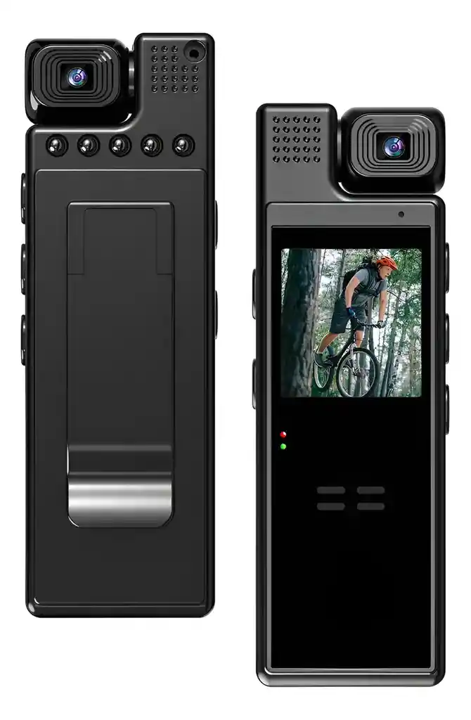 Gran capacidad de memoria: con una capacidad de hasta 128 GB de tarjeta de memoria, esta cámara corporal ofrece un amplio espacio de almacenamiento para tus vídeos. (tarjeta de memoria de 64 GB incluida, ponte en contacto con nosotros si necesitas una tarjeta de memoria de 128 GB) Tiempo de espera prolongado: equipada con una batería de litio de 1200 mAh, la cámara de cuerpo pequeño ofrece hasta 6 horas de tiempo de grabación, lo que garantiza que la cámara esté siempre lista para grabar cuando la necesites. Detección de movimiento: cuando se detecta movimiento, la minicámara de vídeo automáticamente comienza a grabar y, cuando cambia del modo dinámico al estacionario, graba se detiene automáticamente hasta que el tiempo de inactividad alcanza los 20 segundos. Visión nocturna: la cámara corporal HD tiene una función de visión nocturna que se enciende por la noche y se apaga durante el día. Incluso en condiciones de poca luz, la cámara de vídeo garantiza una grabación de vídeo nítida. Diseño de clip. La grabadora de vídeo portátil cuenta con un diseño de clip que permite sujetarla fácilmente a... el cuello, el bolsillo o la mochila, lo que facilita su transporte y uso dondequiera que vaya. Especificaciones: lente: lente giratoria, pantalla TFT de 180 grados: pantalla a color de 1,3 pulgadas (240 x 240) Resolución de vídeo: 1920* 1080P Formato de archivo de vídeo: AVI Formato de foto: JPG Vídeo en bucle: apagado/3 minutos/5 minutos/10 minutos/15 minutos Balance de blancos: automático/diurno/nublado/fluorescente Compensación de exposición: 1/1/0/-1/-2 Detección de movimiento: desactivado, encendido, con marca de fecha/hora:, encendido Tono clave: apagado, encendido Apagado automático: apagado/1 minuto/3 minutos Frecuencia AC: 50 Hz, 60 Hz Pantalla automática: apagado/3 minutos/5 minutos/ 10 minutos Volumen: apagado, 0-7 grados Formato de archivo de grabación: WAV Formato: confirmación, cancelación Sistema de reinicio: confirmación, cancelación Humedad de funcionamiento: 30% Temperatura de funcionamiento: -25/+75 Fuente de alimentación: voltaje USB 5 V, corriente 1 A, batería 3,7 V (la soldadura de la batería no es extraíble) Batería: 3,7 V, 1200 mAh Lista de embalaje: 1 cámara corporal, 1 tarjeta de memoria de 64 GB, 1 cable tipo C, 1 manual