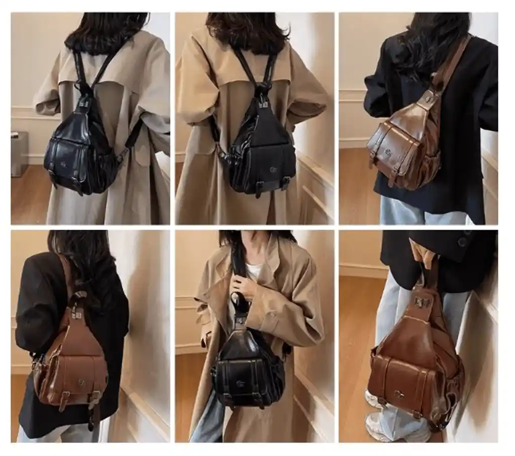 Mochila Tipo Crossbody de Cuero Sintético Diseñada para quienes buscan estilo y practicidad en un solo accesorio. Su diseño compacto permite llevarla cómodamente en la espalda, al hombro o cruzada, ideal para el día a día. Material en cuero sintético de alta calidad Amplio compartimento principal y bolsillos laterales Correa ajustable y diseño ergonómico Disponible en colores elegantes: negro y café Perfecta para salidas casuales, viajes o uso diario Un accesorio versátil, moderno y funcional que combina con cualquier estilo.