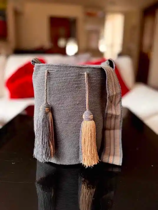 Mochila Wayuu grande de 2 hebra, elaborado en la rancheria chispana por artesanos wayuu.
