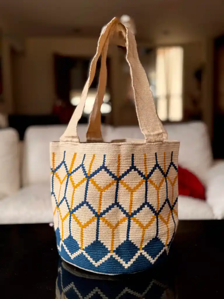 Mochilon Wayuu, elaborado en la rancheria chispana por artesanos wayuu.