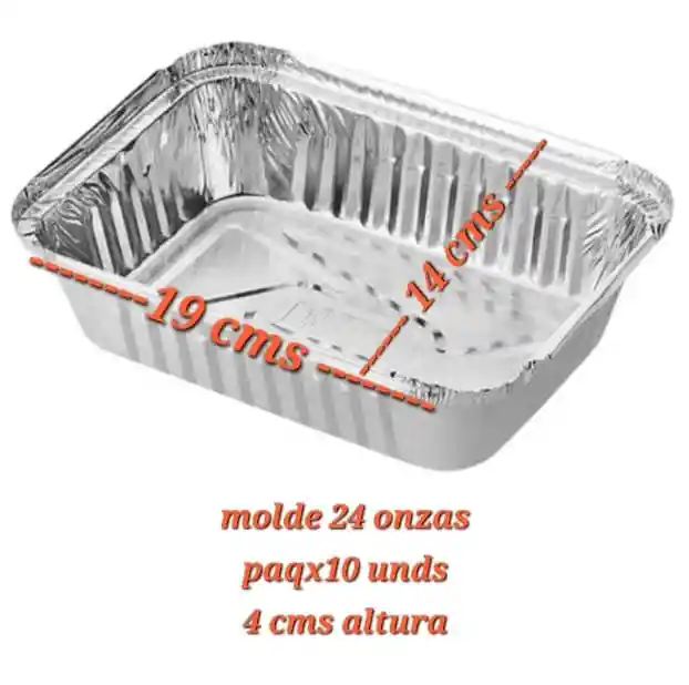 MOLDE ALUMINIO 24 ONZAS CON TAPA 14x19 cms PAQUETE X 10 UNDS PERMITEN CONGELAR Y HORNEAR FACILITAN COCCIÓN DE LOS ALIMENTOS